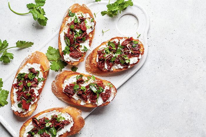 Je craqueBruschettas tomates séchées ricotta et arôme naturel de Basilic