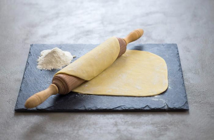 - Ensuite, pour utilisation, saupoudrer un peu de farine sur le plan de travail et y étaler la pâte au rouleau.