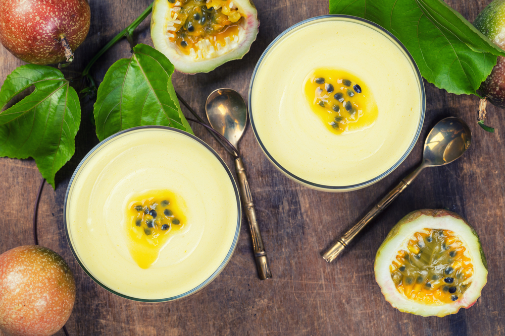 Je craqueVerrine au yaourt, chantilly à l'arôme de Vanille et meringue aux fruits exotiques